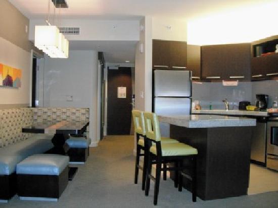 Here are some photos of the suite: Clockwise from top left: 2nd bedroom, kitchen & dining area, master bedroom bath area, and living room.