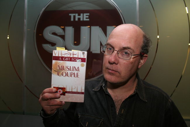 Eric Brazau holds his copy of A Gift for Muslim Couple in the front lobby of the Toronto Sun.