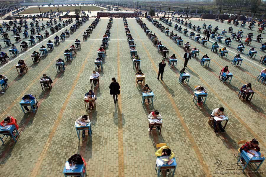 Caption for photo at top of this post: "The principal of this middle school in Wuhan, Hubei province, ordered the students to sit their exam outdoors on the playground in order to prevent cheating from taking place."