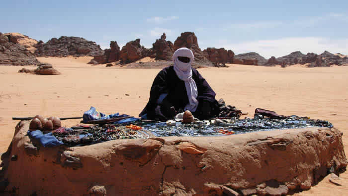 A natural, solitary Tuareg jewellery shop in the Sahara desert, Acacus, Libya.