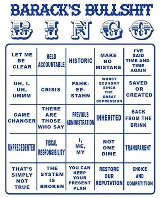 - Before Barrack Obama's next televised speech, print your "Bullshit Bingo Card"