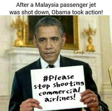 Now I know that some of my readers think President Obama is the most indecisive, the weakest, most incompetent, most economically ignorant, most timid, most appeasing, most cowardly, most Islamic-ass-kissing, America-hating, Marxist President this country has ever had, but I beg to differ. Today I discovered that our President finally took action and made a decisive move to prevent civilian planes from being shot down.
